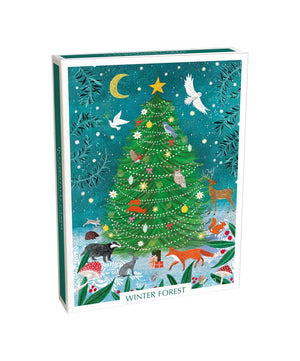 Pack of 16 cards designed by Josie Shenoy and Bex Parkin. With white envelopes. Message inside 'Merry Christmas and a Happy New Year'. 8 each of 2 designs. Presented in plastic free card packaging.