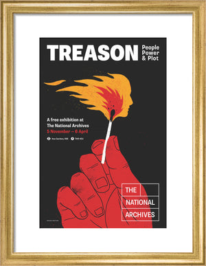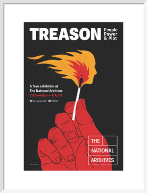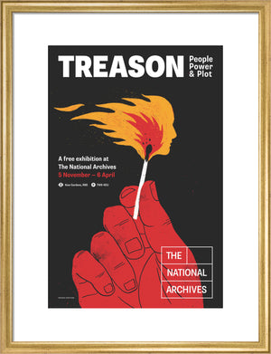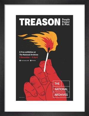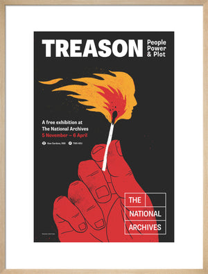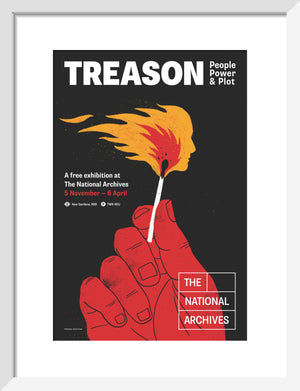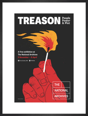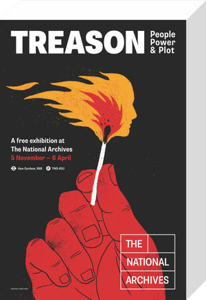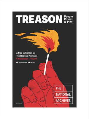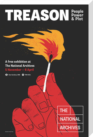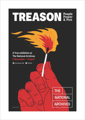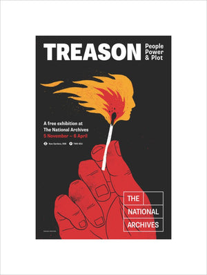 Poster for Treason a National Archives Exhibition November 2022-April 2023. Based on an illustration by Adria Fruitos.