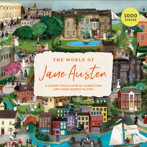 The World of Jane Austen is a new 1000 piece puzzle, featuring a wide cast of Jane Austen's contemporaries and characters. Hidden amongst the rolling hills of Derbyshire, Hampshire, Lyme Regis and more, you can see Mr Darcy at home in Pemberley, or find Mr Knightly enjoying a stroll around the garden, plus many more familiar characters hidden alongside Austen's peers.