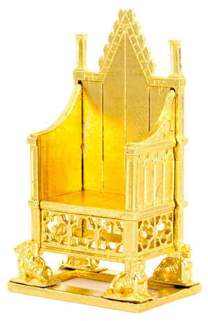 A fine detailed 22ct gold plated pewter replica model of the Coronation Chair, housed in Westminster Abbey. Made in the UK.