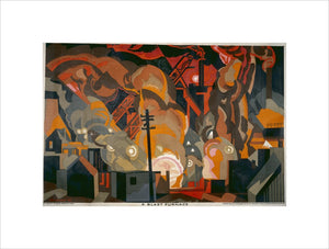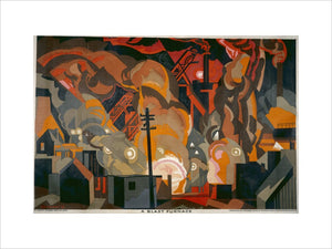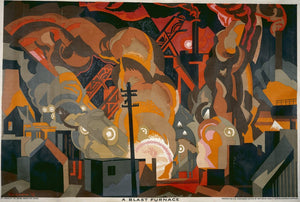 A Blast Furnace, a poster by artist Clive Gardiner, issued by the Empire Marketing Board (1927-1933). The Empire Marketing Board was formed in May 1926 by the Colonial Secretary Leo Amery to promote intra-Empire trade and to persuade consumers to 'Buy Empire. It was abolished in 1933.