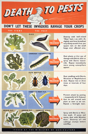 Public information poster on pest control, issued by the Ministry of Agriculture and Fisheries (1939-1945).