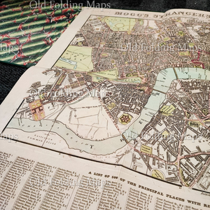 Taken from the original antique copper engraved map or plan first published in 1806 by Edward Mogg. The map was continually updated and this edition was published in 1837. Extending from Hyde Park in the west to the Mile End Road in the East and from Pentonville in the north to Kennington in the South. At the bottom of the map is "A list of 500 of the principal places with references to their situation in the above plan".