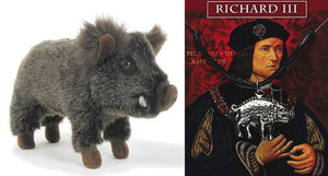 Four hundred years ago, wild boar officially became extinct in Britain. Boar hunts were the realm of kings in the middle ages, indeed the boar was the heraldic symbol used by Richard III. A charging boar was considered an exceptionally dangerous foe, due to its thick hide and dense bones. Our cuddlier boars are a much more friendly proposition, and come complete with a removable metal boar pendant in the shape of the King's royal symbol.