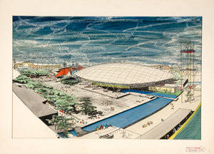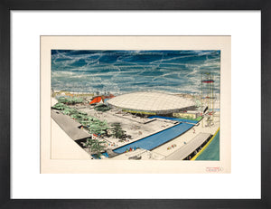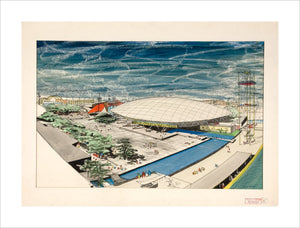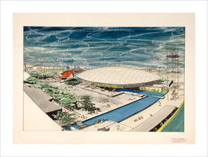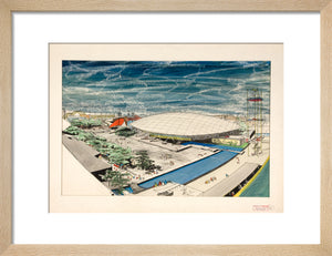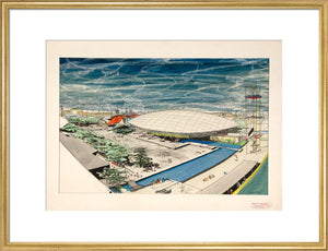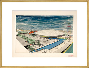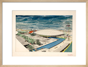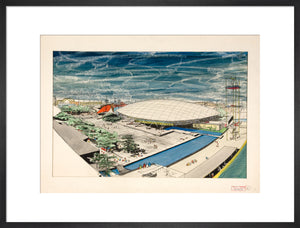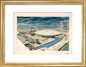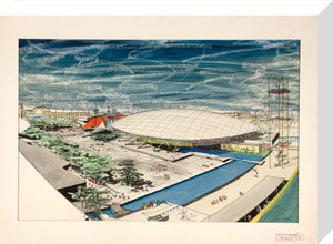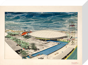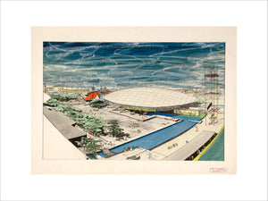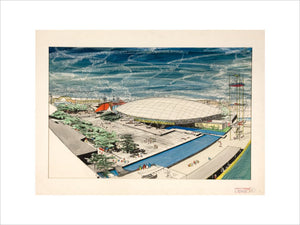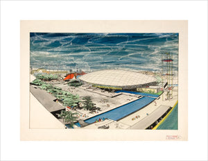 Drawing of the Dome of Discovery and the concourse of the South Bank site at the Festival of Britain, 1951, by Douglas Stephen. The Festival of Britain was a nation-wide festival held in the summer of 1951. Organised in the years of post-war austerity as a 'tonic for the nation', the Festival was a celebration of British history and culture and contributions to industrial design and manufacturing.