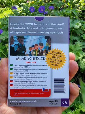 Discover the heroes (and anti-heroes) of World War II by winning their character cards and the game. A fantastic quiz card game to educate and entertain all ages.