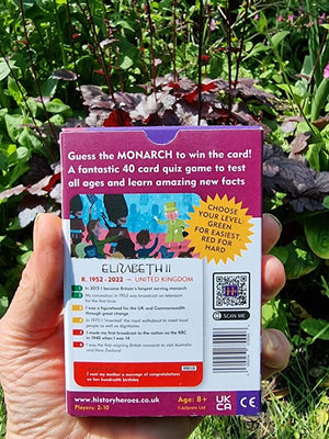 Guess the Kings & Queens from British history to win their card. A fantastic quiz card game to educate and entertain all ages.